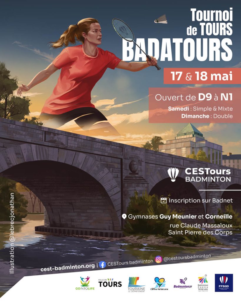Le weekend du 17 & 18 mai se déroulera le tournoi de Tours « BadaTours » !