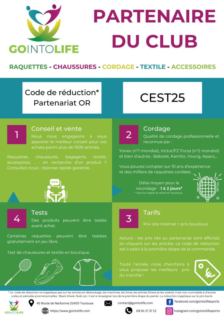 (Tous les hauts sont floqués CESTours Badminton dans le dos )